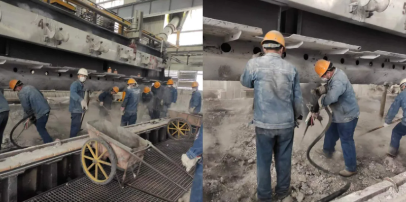 電解槽大修如同外科手術(shù),需在有限停槽期內(nèi)完成數(shù)個部件的拆解、檢測與更換。延誤一天,意味著效益的損失。為搶進(jìn)度,電解車間將人員分成四班倒,可實際干起來,所有人都不約而同選擇了“連軸轉(zhuǎn)”。技術(shù)員小王剛下白班,見夜班人手緊張,抓起手套又鉆進(jìn)了槽底:“早一天啟動,就能多增加1噸多的鋁液!”槽頂排風(fēng)機的嗡鳴聲中,安全員老周扯著嗓門喊:“防護(hù)面罩戴緊!粉塵吸進(jìn)肺里要命!”他手里的強光手電掃過槽底,光束里翻騰的塵埃像一場無聲的雪暴。十幾米長的電解槽如同被解剖的巨獸,槽殼敞露,陰極鋼棒上斑駁的電解質(zhì)結(jié)痂仿佛鱗片,記錄著它連續(xù)運轉(zhuǎn)10多年的疲憊。這是大修的關(guān)鍵戰(zhàn)役—— 7天內(nèi),必須讓電解槽“復(fù)活”。
